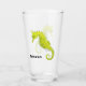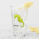 A watercolor of a vibrant yellow seahorse adorns this customisable glass!