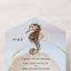 Seahorse glitter jelly fish blue gold beach all in one invitation