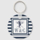 Seahorse Monogram Navy Blue Striped Nautical Key Ring