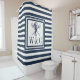 Seahorse Monogram Navy Blue Striped Nautical Shower Curtain