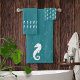 Seahorse Ocean Teal blue and white Bath Towel Set