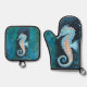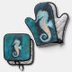 Seahorse oven mitt and potholder set