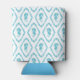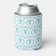Pretty blue and white personalised can coolers, printed with a pattern of lovely seahorses. Geometric seahorse pattern.