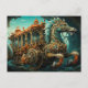 Seahorse Pulling Ornate Carriage Of Travellers Postcard