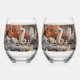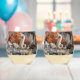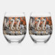 Stemless wine glasses with an underwater image of beautiful Seahorse, Orange Coral, Seashells, Driftwood and Starfish.