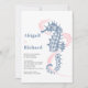 Seahorse, seaweed dusty blue, blush beach wedding invitation