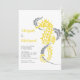 Seahorse and seaweed yellow and grey wedding invitation that features a yellow seahorse and grey seaweed while the names are written in a modern bold typography. This modern whimsical template design is perfect for a summer beach wedding. The back is of solid grey colour.