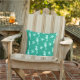 Pillow in a mixed media digital rendition of a seahorse and starfish in light seafoam green against a rich, underwater teal background