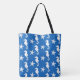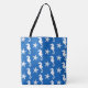 Mixed media digital rendition of a seahorse and starfish against a deep cobalt blue background print bag