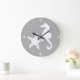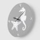 Seahorse & starfish - white on silver grey large clock