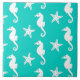 Mixed media digital rendition of a seahorse and starfish against a rich turquoise / peacock background