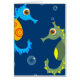 Illustration of a cute cartoon sea horse couple swimming underwater with bubbles. Image available on various gifts and products.