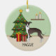 Seal And White Italian Greyhound & Christmas Tree Ceramic Ornament