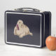 This is a standard metal lunchbox that appears to work just fine. We designed this box ourselves with an uploaded photo and custom text on the front and back. It looks absolutely beautiful except the front of the lunchbox is not centered like it shows in the photo. The print borders don't align with the inset flat part of the box where the preview photo online showed it perfectly centered in there. The back looks nice and centered though.