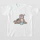 100% cotton so perfect for summer, It is a nicely designed t-shirt, the fabric is soft and the seams finished well, the body of the t shirt has no side seams. I bought a medium size for my two grandsons, aged 9 and 8 it will be slightly big on them but I would rather that than too small