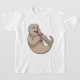 100% cotton so perfect for summer, It is a nicely designed t-shirt, the fabric is soft and the seams finished well, the body of the t shirt has no side seams. I bought a medium size for my two grandsons, aged 9 and 8 it will be slightly big on them but I would rather that than too small