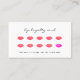 Elegant loyalty business cards feature a 10-punch loyalty program with pink and red watercolor lip illustrations. Personalise with your own loyalty terms and add your contact information to the reverse side. A chic choice for makeup artists, lip colour distributors and beauty retailers.