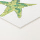 Mosaic, graphic drawing, of two starfish, and mollusk shell, displayed with phrase, "Sealife Exotic"-in speckled, island patterns of, green, yellow, brown, and blue, shades.