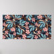 Seamless abstract pattern, floral motif, dark back poster