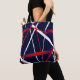 Seamless Abstract Red and White Stripes on A Blue Tote Bag