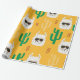Seamless cartoon llama and cactus pattern in brigh wrapping paper
