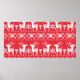Seamless Christmas scandinavian pattern with white snowflakes, deer, flowers on red background.