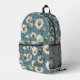 Seamless Daisy Flower Pattern on Blue Printed Backpack