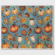 Seamless Fall Pattern with Pumpkins, Autumn Leaves Wrapping Paper