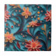 A beautiful ceramic tile with a seamless paper floral pattern against a blue background.
