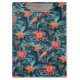 A beautiful clipboard with a seamless paper floral pattern against a blue background.