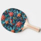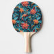 A beautiful ping pong paddle with a seamless paper floral pattern against a blue background.