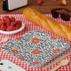 Seamless floral pattern with vibrant orange flower paper plate