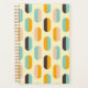 A seamless geometric pattern features vertical, oval shapes in soft yellow, teal, peach, orange, and brown, creating a retro, playful vibe.