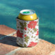 Seamless Merry Christmas red poinsettia green euon Can Cooler
