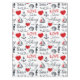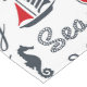 Seamless nautical pattern with nautical symbols (sailing boat, anchor, waves, seahorse, seashell) and red hearts decoration with text design on white background