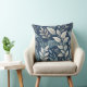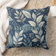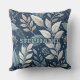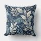This seamless botanical pattern throw pillow features graceful leaves and delicate berry-like clusters in shades of blue, white, and soft grey, flowing across a deep navy background. Subtle textures and scattered white dots evoke a starry, serene night garden atmosphere. Cool-toned and refined, this design brings a sense of calm elegance—perfect for winter themes and nature-inspired aesthetics.