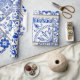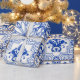 Seamless patchwork tile with Victorian motives. Majolica pottery tile, blue and white azulejo, original traditional Portuguese and Spain decor. Vintage