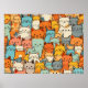 Delight in this seamless pattern of kawaii kittens, a true treat for feline lovers! In soft pastel hues, each kitten is meticulously drawn in a cartoon style, exuding pure sweetness and charm. This poster is the perfect gift for 'crazy cat ladies', cat parents, and anyone who appreciates the cuteness of kittens. The anime aesthetic, with its delicate details and 'frilly cartoony' style, makes it ideal for decorating the space of teenagers and fans of charming art.