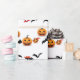 This Halloween-themed pattern features smiling pumpkins, flying witches on broomsticks, black cats, bats, and full moons. Against a light background, these festive elements create a playful and seasonal design. Perfect for spooky crafts or decorations!