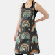 Seamless pattern of hand drawn hearts and boho rainbow in pastel mint and neutral beige colours on dark background