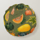 Seamless pattern of pumpkins and leaves on a green round cushion