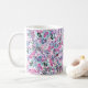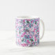 Seamless pattern of purple flowers and berries,blu coffee mug
