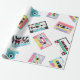 Seamless pattern with audio tapes in retro 80s sty wrapping paper
