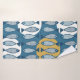 Seamless pattern with blue fish inspired by scandi bath towel