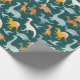 Seamless pattern with flat vector cartoon dinosaur wrapping paper