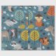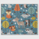 Seamless pattern with forest animals on blue backg wrapping paper