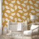 Seamless Pattern with Golden and White Leaves Wallpaper