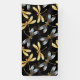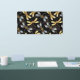 Seamless pattern with gold, jewellery, shiny dragonflies with detailed, sparkling wings on black background. Gold dragonfly.
