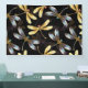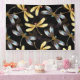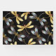 Seamless pattern with gold, jewellery, shiny dragonflies with detailed, sparkling wings on black background. Gold dragonfly.