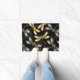 Seamless pattern with gold, jewellery, shiny dragonflies with detailed, sparkling wings on black background. Gold dragonfly.